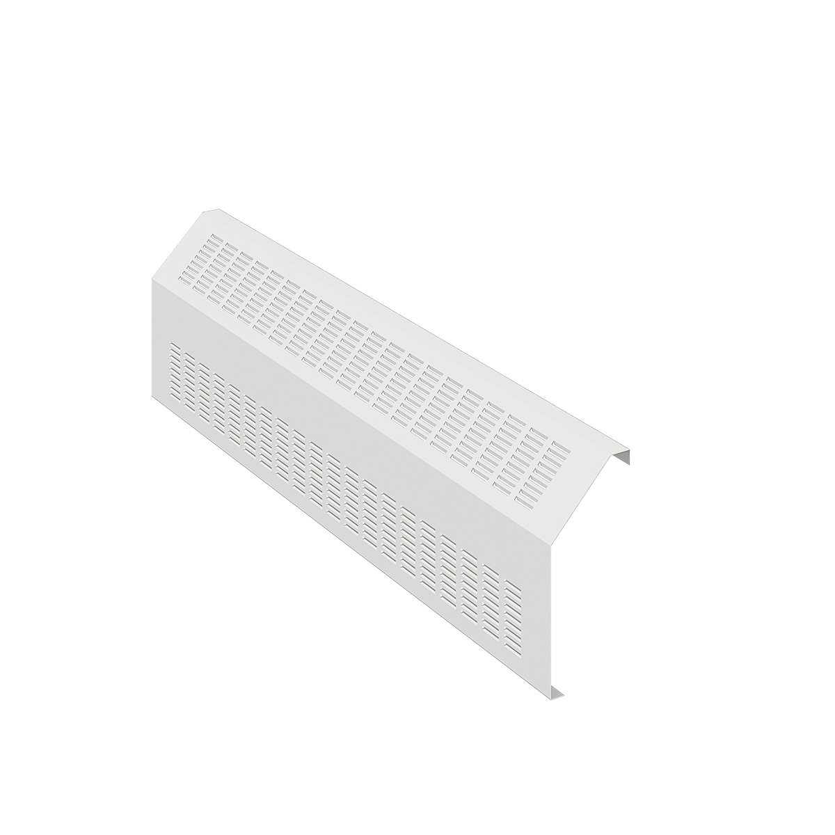 FT45FM – 45o sloped top fin tube cover, punched louvers on the slope and low in the front. Standard 18 gauge steel; each cover panel comes with a galvanized wall cleat and floor angle. View our Measuring Instructions.